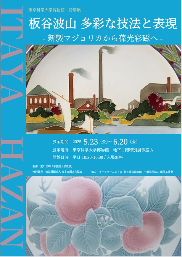 特別展「板谷波山 多彩な技法と表現 —新製マジョリカから葆光彩磁へ—」は、2025年5月26日(月)開催の東京科学大学(Science Tokyo)と東京藝術大学の共同シンポジウム「科学と芸術 人類の未来」の併催企画として開催するものです。