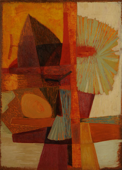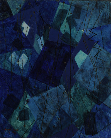 1924(大正13)年横浜で生まれ東京で育った千鶴子は、戦争の足音が迫る時代に佐藤高等女学校(現・女子美術大学付属高等学校)油彩科を卒業し、その後も画家を目指して学び続けました。1948年に前衛芸術家・岡本太郎主宰のアヴァンギャルド芸術研究会に参加し、以後は自らの画風を抽象へ移行させました。