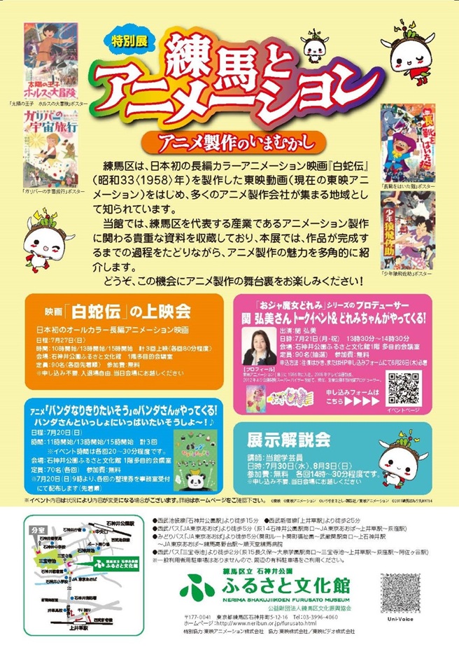 名称:特別展 「練馬とアニメーション アニメ製作のいまむかし」練馬区立石神井公園ふるさと文化館