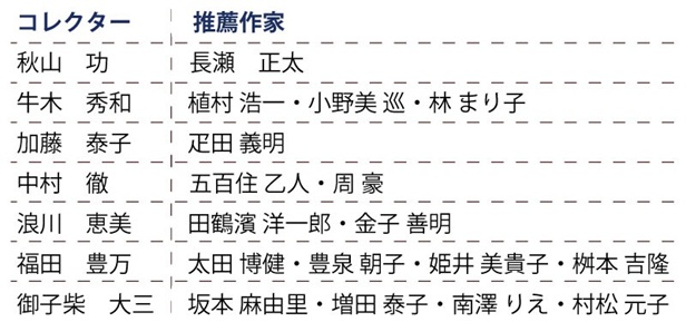 7名のコレクターに蒐集家目線でご自身の推しの作家をそれぞれ推薦して頂きまして、計17名の作家がセレクトされました。画廊が選んだのではなく、実際に作品を蒐集しているコレクターのセレクトによる作家の作品が並ぶので、ご来廊頂くお客様にもこれは欲しい・家に飾りたい、と思って頂けるのではないでしょうか。