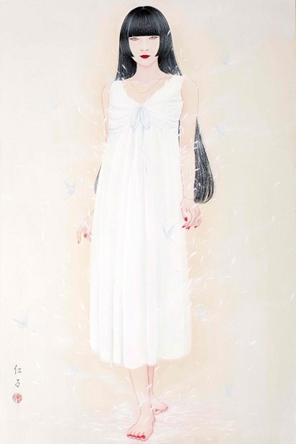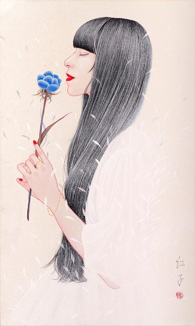 女性像を日本画で表現する作家・丁子紅子氏による個展を開催いたします。