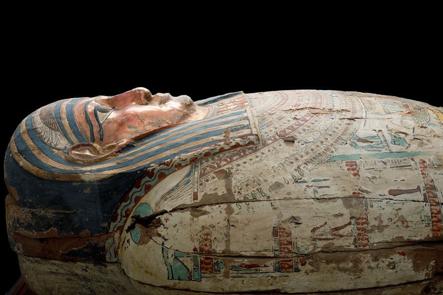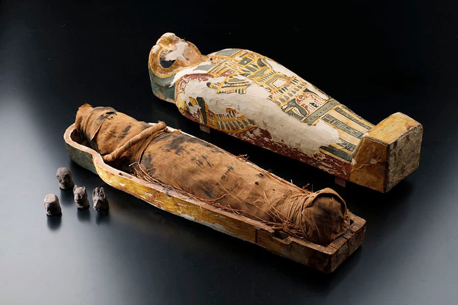 本展では世界的に貴重な遺物であるミイラやミイラマスク、人型木棺、神殿の石柱、ツタンカーメンの指輪をはじめ、当時の生活様式がわかる化粧用容器や装飾品など約200点を展示します。あわせて、過去100年間学術調査がほとんどされてこなかったメイドゥム(マイドゥーム)・ピラミッドの最新調査(2022年)の様子も紹介します。古代エジプト人が築いた神々への信仰や国家、暮らし、死生観に触れることで、3000年にわたる巨大文明の歴史に迫る機会とします。