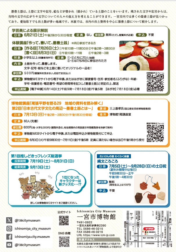 夏季企画展「モノに残った文字・記号‐墨書土器‐」一宮市博物館