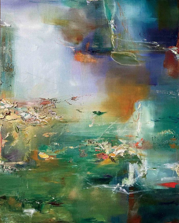 私は、有機物の存在をモチーフに、過ぎ去った時間や記憶の“印象”を、色彩と質感を通じて抽象的に描いています。