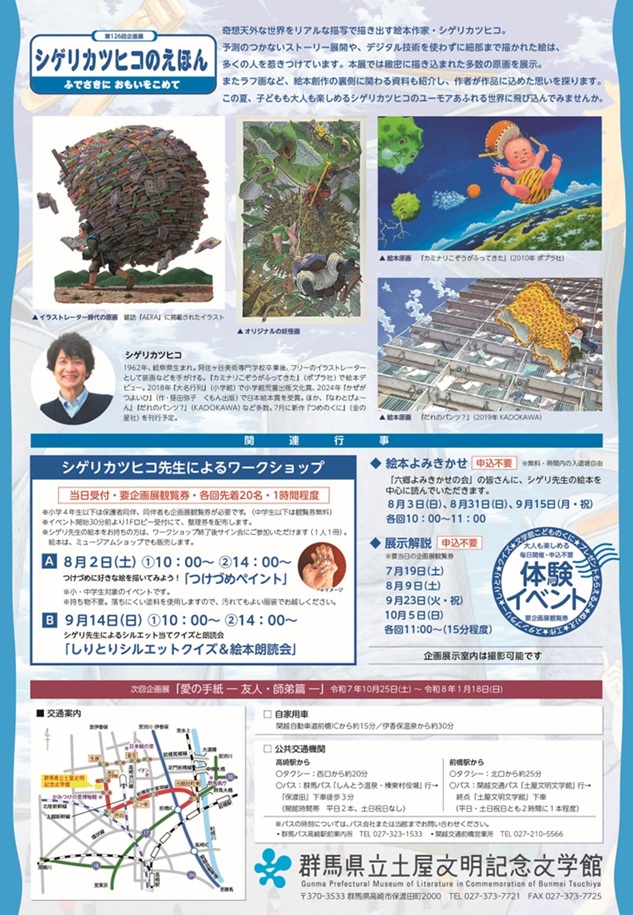 名称:「シゲリカツヒコのえほん ふでさきに おもいをこめて」群馬県立土屋文明記念文学館