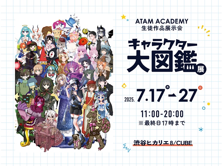 「キャラクター大図鑑展」は、小学生から高校生までの子どもたちが在籍するデジタルイラスト教室「アタムアカデミー」の2025年度生徒作品展です。