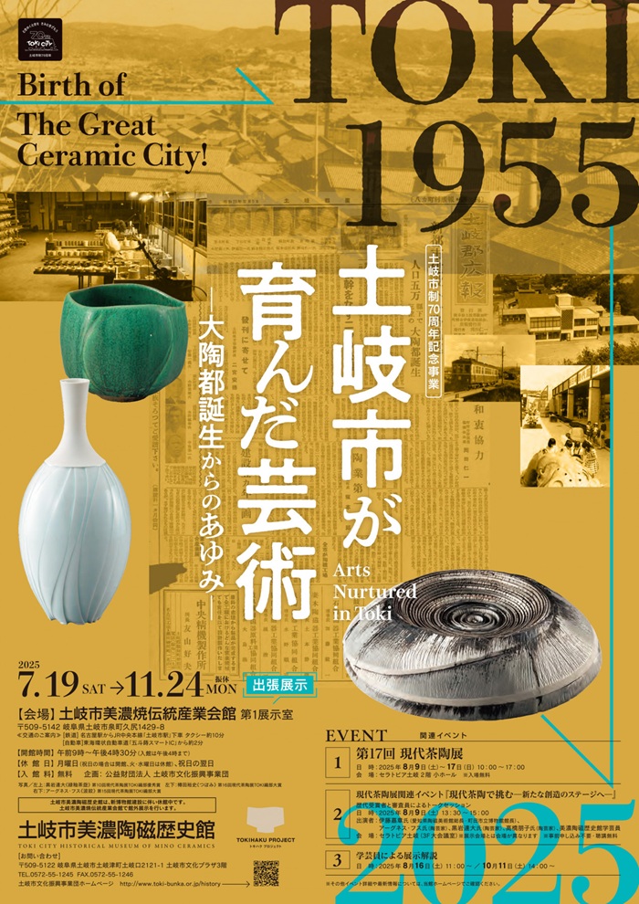 本展では、土岐市制70周年を記念し、やきもののまち土岐市ならではの芸術のあゆみを作りてたちの創作の軌跡とともに振り返ります。