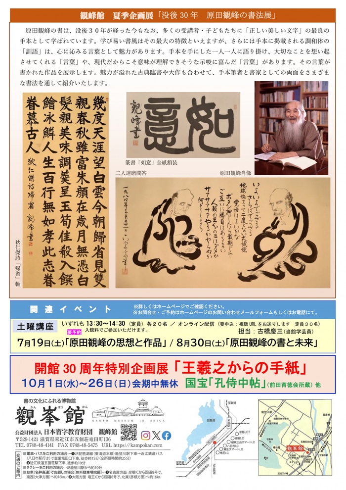 夏季企画展「没後30年 原田観峰の書法展」観峰館