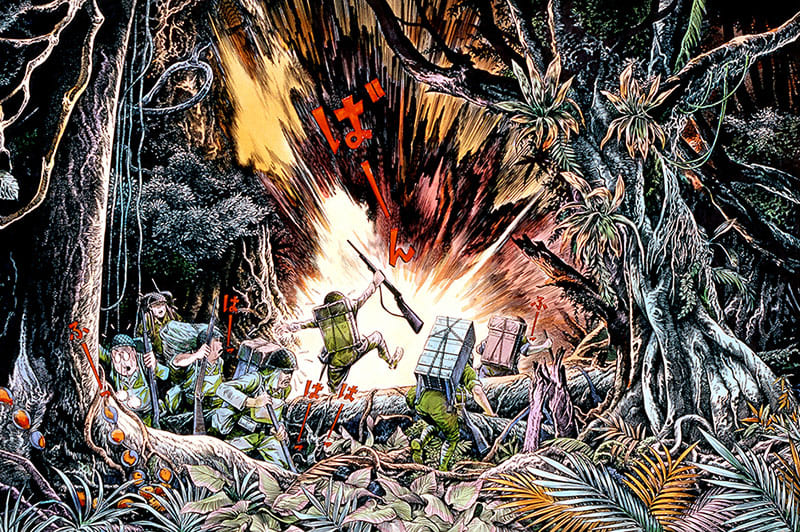 本展は、太平洋戦争の激戦地ラバウルで生死の境をさまよい片腕を失い、極貧時代を乗り越え、独自の漫画表現に到達した水木の画業を、漫画原稿や原画、愛用の道具、多彩な映像資料で紹介する九州初の大規模回顧展で、2017年から全国9箇所を巡回し、広く世代を越えて人々の心に強い印象を与えてきました。