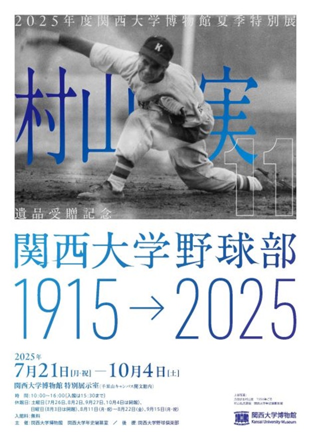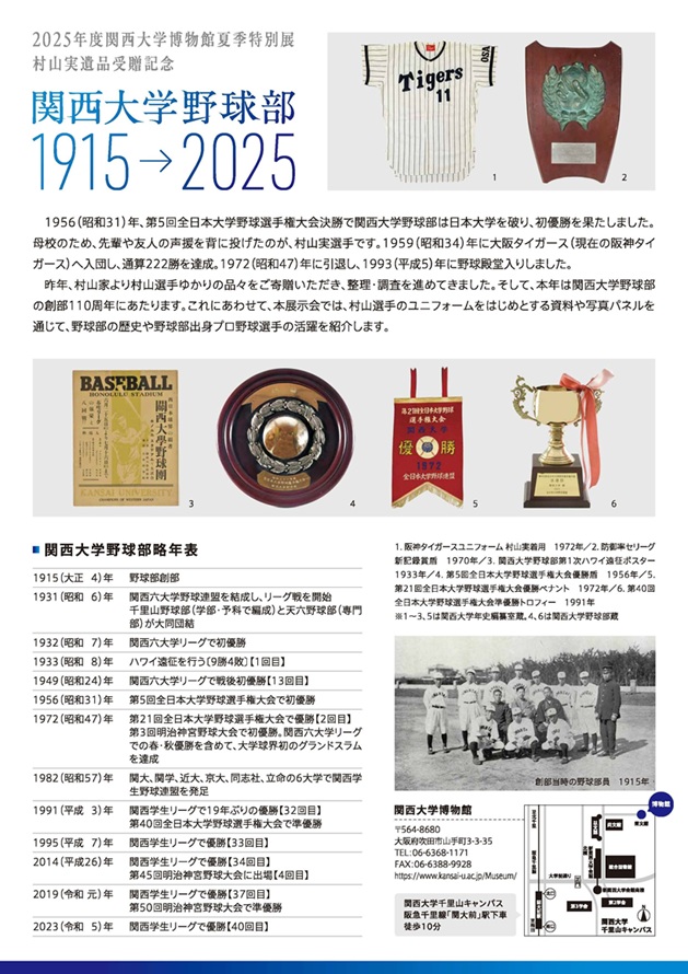 名称:夏季特別展「村山実遺品受贈記念 関西大学野球部 1915→2025」関西大学博物館