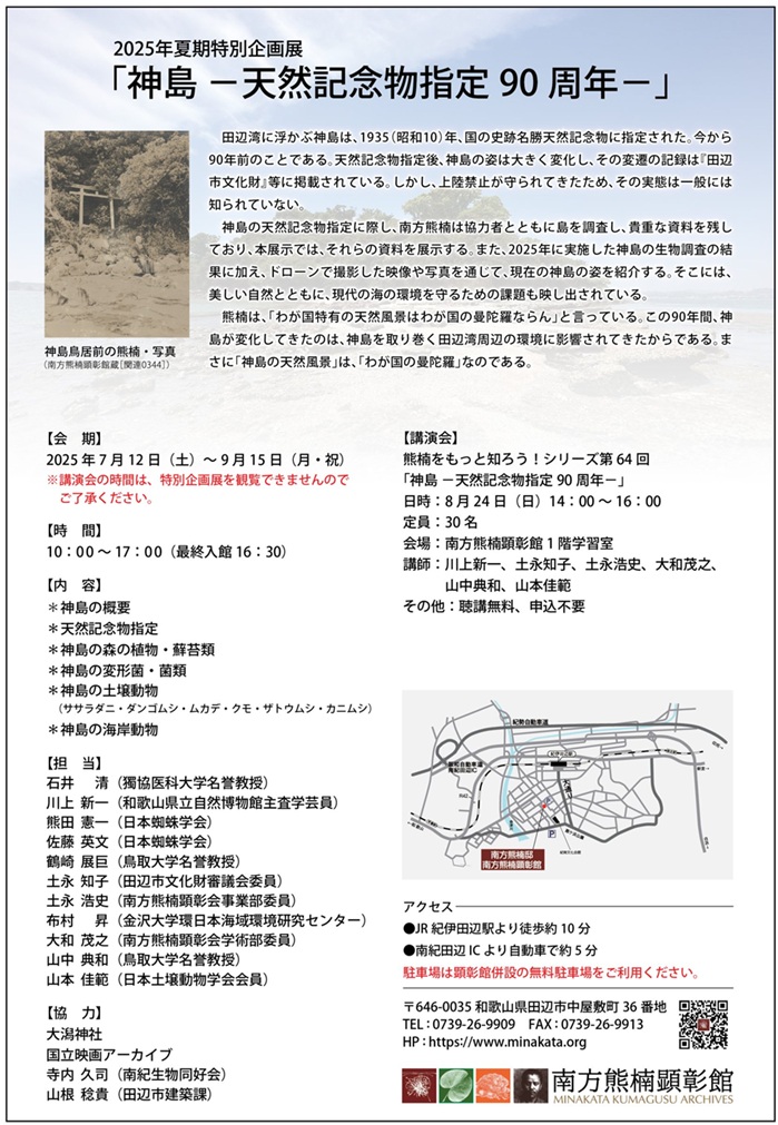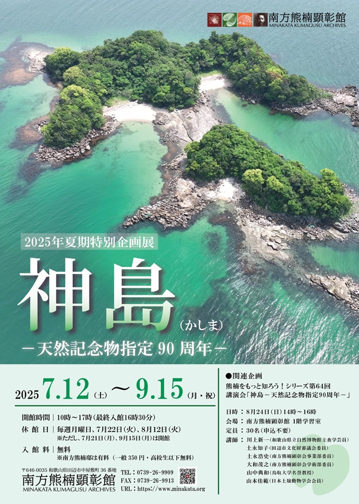 名称:夏期特別企画展「神島―天然記念物指定90周年―」南方熊楠顕彰館