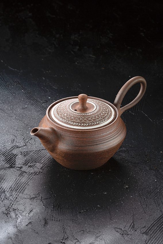 「朱泥梨皮藻掛窯変嵌蓋茶注」