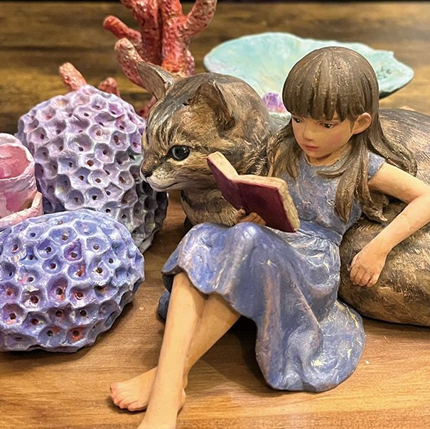 曽根絵里子 「よふかし。」 18×18×30㎝ テラコッタ