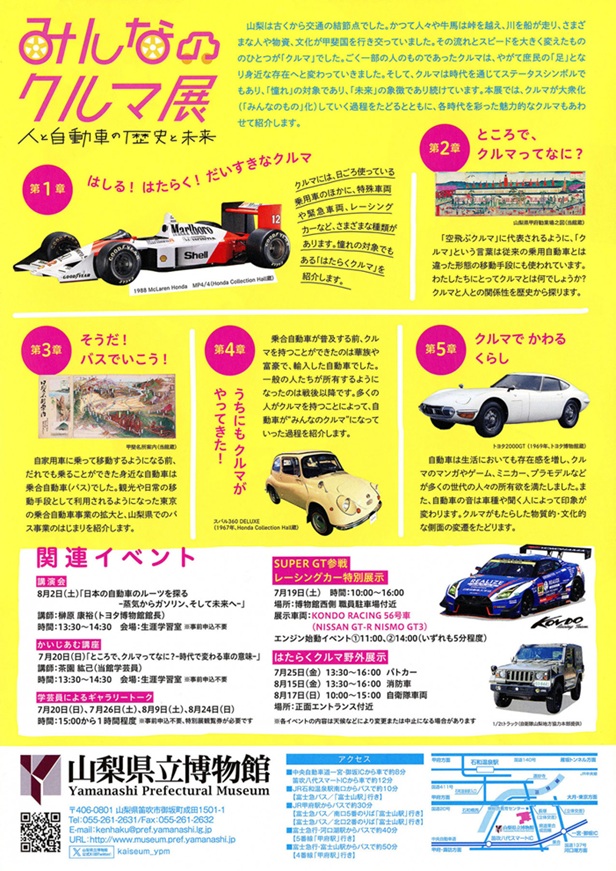 名称:開館20周年記念特別展「みんなのクルマ展 人と自動車の歴史と未来」山梨県立博物館