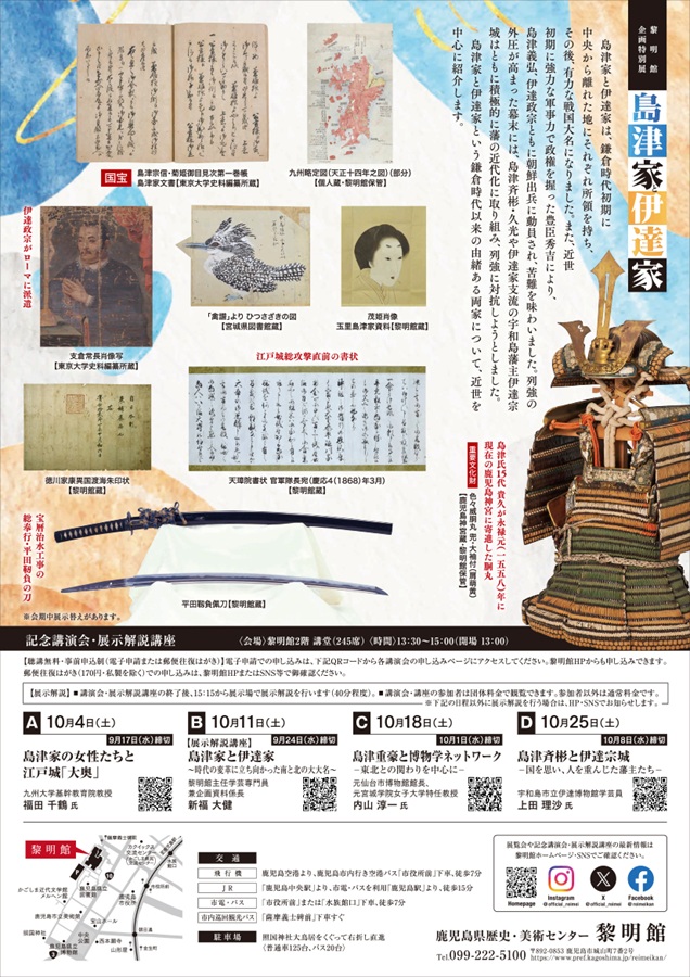 名称:企画特別展「島津家と伊達家~時代の変革に立ち向かった南と北の大大名~」鹿児島県歴史・美術センター黎明館