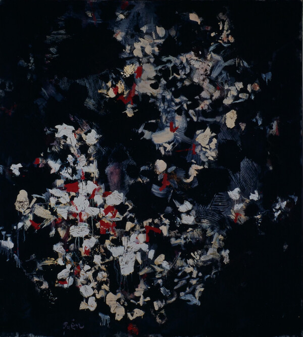 絵画表現におけるマチエールとは、絵肌や画面の質感のことを意味します。猪熊は渡米をきっかけにそれまでの半具象的な表現を脱し、抽象的な絵画を開花させました。ニューヨークに渡った初めの頃は、油絵具に砂を混ぜたり、厚く盛り上げたり、絵具のかすれやにじみの効果を生かしたりした表現に挑みます。埴輪などの東洋的なモチーフや、状態やエネルギーなどをテーマに、物質感のあるマチエールをもつ絵画を描きました。