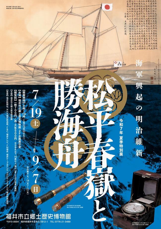 本展では、幕末期において「四賢侯」に数えられる16代福井藩主松平春嶽と、同じく「三舟」の一人として名高い幕臣勝海舟に注目し、両名の活動や交流を福井に遺る資料を中心に紹介します。
