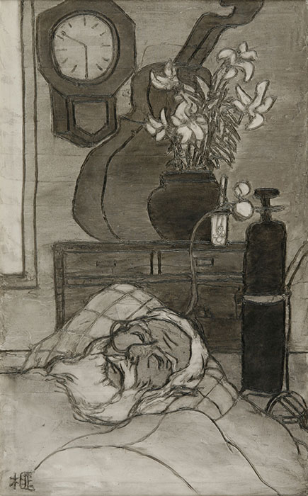 熊谷守一の次女・熊谷榧(かや)は、1977年に守一が逝去した翌年の1978年3月2日から3月11日、東京/銀座の四季画廊で父・守一の亡くなるまでの姿を描いた油彩画作品を展示する「熊谷守一最後の十日間」展を開催しました。