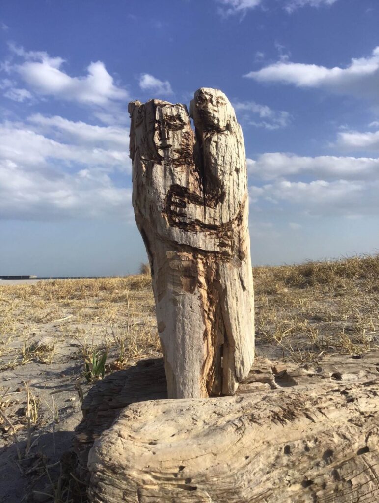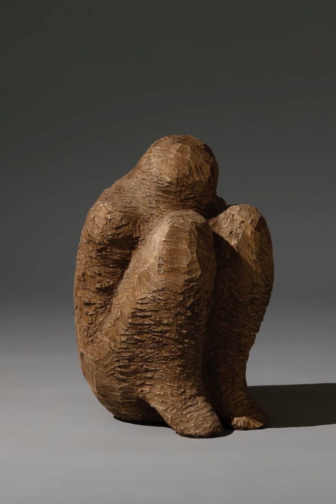 1961年東京に生まれた安藤は、福島県いわき市を拠点に活動していたものの、2011年、東日本大震災で被災。自宅、アトリエと作品を津波で失い、奈良に移住している。原木や廃材の木材を素材に、手斧で叩き、刻んで制作を行う安藤は、木材の生産が盛んな奈良の地において、制作を続けてゆくことになった。
