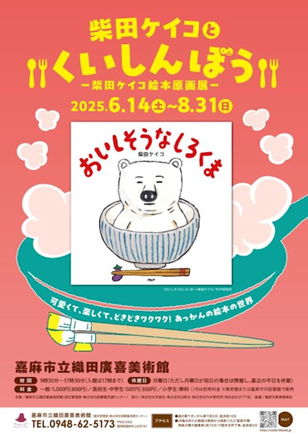 絵本作家・柴田ケイコの作品世界を「食べること」をテーマにご紹介する展覧会です。柴田ケイコさんは、愛らしいキャラクターと、そして何といっても美味しそうな食べ物を描いた絵本で多くの読者に親しまれています。会場では、「しろくま」シリーズや柴田さんの創作の原点ともいえる絵本「めがねこ」など、合わせて211点の絵本原画を一堂に展示。柴田さんの鮮やかで心温まる作品の数々を、じっくりとお楽しみいただけます。絵本に描かれた食べ物やキャラクターたちが織りなす、「おいしい」世界をぜひご堪能ください。