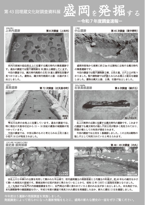 第43回埋蔵文化財調査資料展「盛岡を発掘する 令和7年度調査速報」盛岡市遺跡の学び館