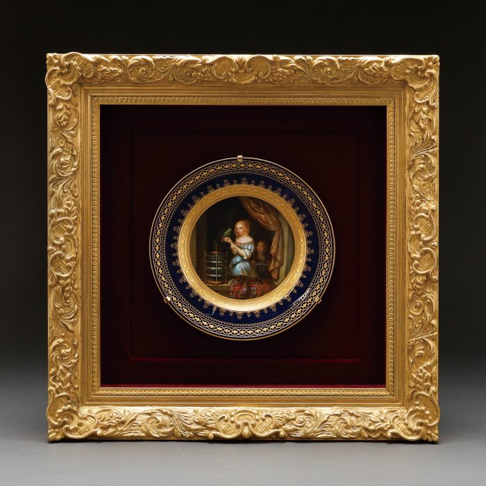 飾り皿「鳥と少女」(額付)