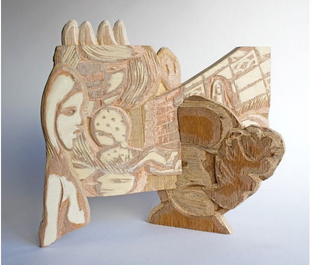 今展では制作意図はそのままに、積層構造をもつ合板でレリーフを素材に制作することで、形に沿って等高線のように層が現れる立体的な要素と、線彫りを施した際に彫り跡のみ色味が変化して見える平面的な要素、その両方を併せ持つ合板を用いることにより表現したい空間の自由度がさらに高まると感じたと浅野井氏は語ります。浅野井 春奈氏の彫刻作品は、作家の思考や時間の堆積そのものであり、単なる造形を超えて「触れられる記憶」のように私たちに語りかけてきます。更に素材と対話し、素材が本来持つ性質や抵抗を受け止めながら、最小限の操作によって本質を引き出していくそのプロセスは、彫刻という表現が本来備えている、時間性や身体性をあらためて私たちに想起させます。浅野井 春奈氏の新・近作の発表となります。どうぞご高覧ください。