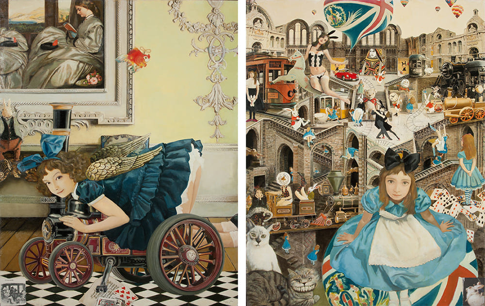 右:《少年王國〈アリス、君は誰なの?〉》2015年、ミクストメディア 笠間日動美術館蔵