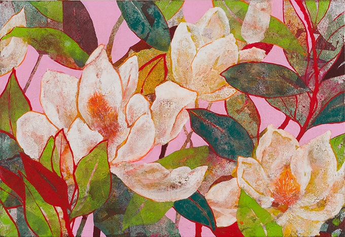 岩﨑知子は日本画を基盤としながら異なる素材や技法を横断し独自の絵画表現を追求する画家。植物や野菜など身近なモチーフに自然の生命力と魂の光と影を重ね合わせ現代における美の在り方を問い続けている。