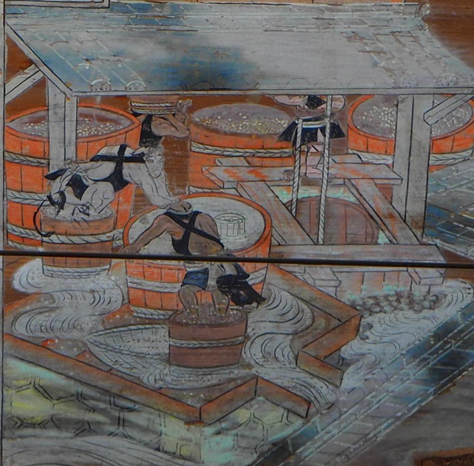 絵馬に描かれた酒造りのようす