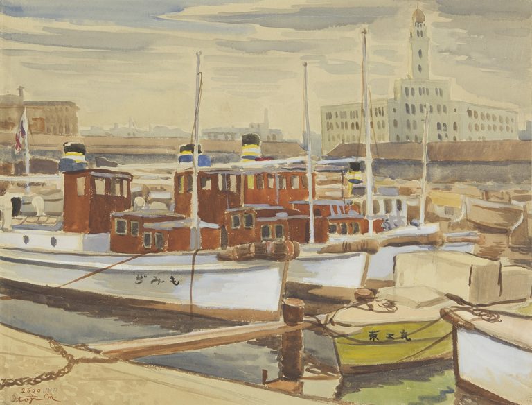 三橋兄弟治《港》 1940年 水彩、紙 57.3×75.0cm