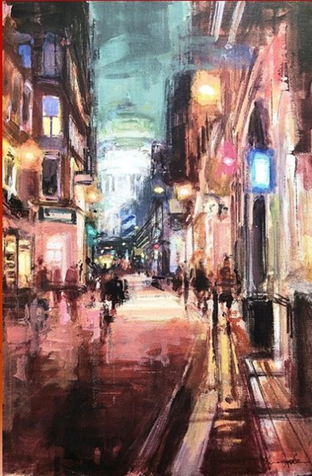 独学で油絵を学び 建築学で培った空間把握と構造意識を基盤に リズミカルで動きのある筆致と鮮やかな色彩によって 都市の躍動感を描き出す寺本和純の油彩作品展 街並みに満ちる光の反射 人の気配 建築物のリズムが画面全体に散りばめられ 絵画でありながら 都市を歩く感覚に近い視覚体験を生み出す 建築的思考と絵画表現の融合によって 都市風景を感覚的に再構成する展示
