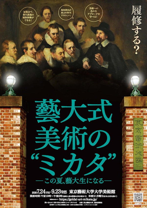 概要:2026年から2028年まで毎夏開催されるシリーズ企画の第一回。東京藝術大学に関係する多様なテーマのもと 現役の教授や講師陣が企画する講義形式の展示を通して 芸術教育を疑似体験できる新しい試みである。東京藝大のコレクションを中心に 美術の歴史 実技 表現 鑑賞 素材 保存修復など多角的な視点から美術にアプローチする。会場では気軽に参加できるワークショップも併設し 子どもから大人まで 楽しみながら講義を履修するように鑑賞体験ができる構成となる。