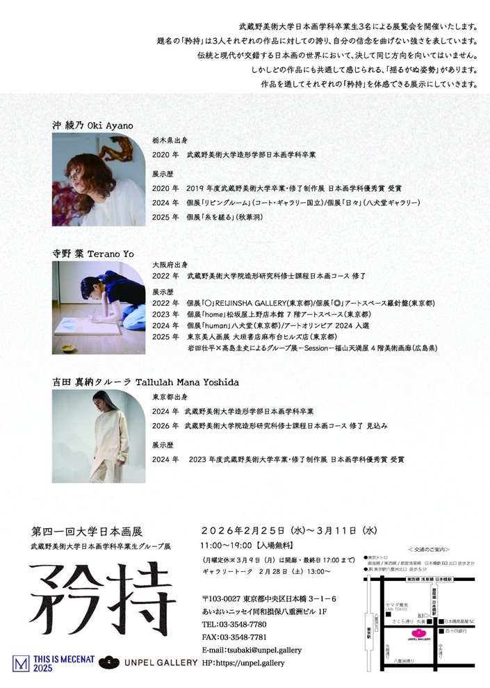 名称:第41回大学日本画展「矜持 武蔵野美術大学日本画学科卒業生グループ展」UNPEL GALLERY
