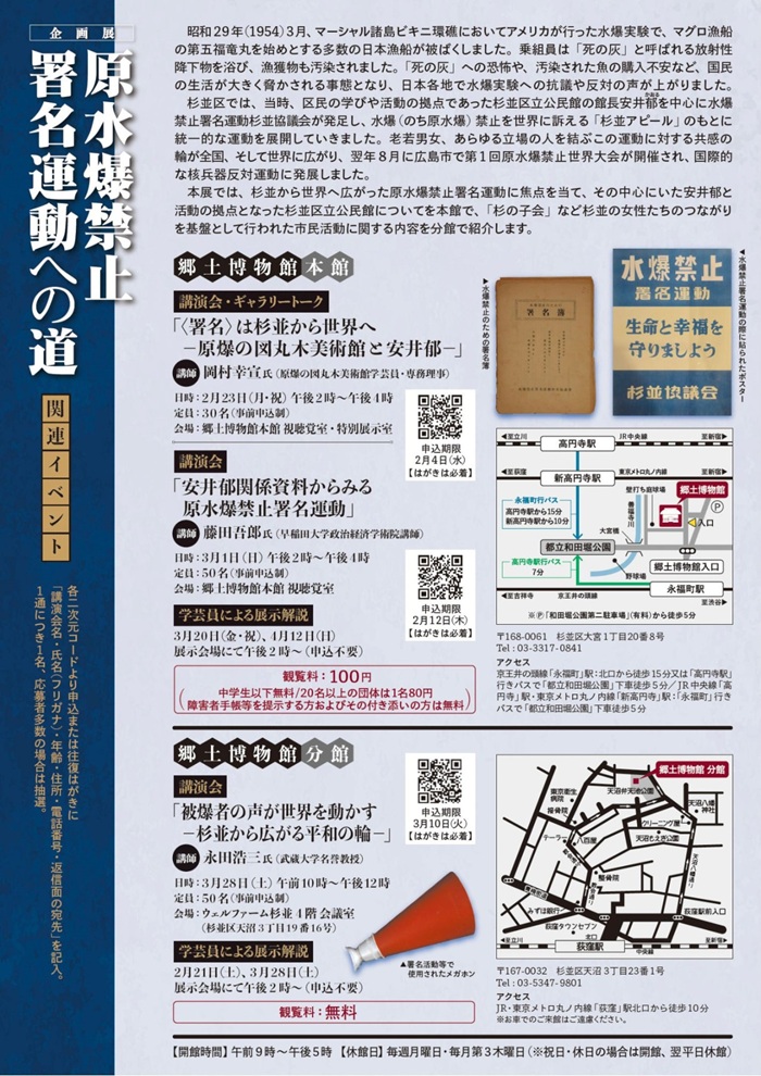 企画展「原水爆禁止署名運動への道」杉並区立郷土博物館 本館・分館
