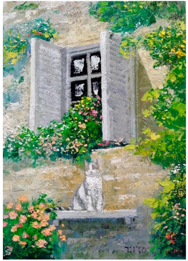 概要:ヨーロッパの街角を思わせる公園や店先、石段や飾られた花々の風景に、猫や犬たちが静かに溶け込む。油彩画家伊東拓実による代表的な扉と猫のシリーズを中心に紹介する展覧会。玄関先で思い思いの時間を過ごす猫、柔らかな太陽光に包まれゆったりと流れる時間のなかに佇む猫たちの姿は、観る者に穏やかな安らぎをもたらす。異国情緒漂う街並みと動物たちの気配が交差する画面は、日常の中に潜む物語性と静かな幸福感を映し出す。