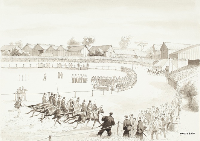 概要:やまさき拓味による競馬漫画優駿の門ROOTSの原画展。幕末の横浜を舞台に日本近代競馬のルーツを描く本作は 1859年の横浜開港から根岸競馬の開催 旧根岸競馬場一等馬見所完成に至るまでの黎明期を三部構成で辿る物語である。イギリス人貿易商N.P.キングドンと日本人騎手草分けの大野市太郎という二つの視点から洋式競馬の定着を描き出す。本展では連載一周年を記念し 序章から12話までの原画の一部を展示替えしながら紹介し デジタルでは味わえない精緻な筆致と迫力を体感できる。