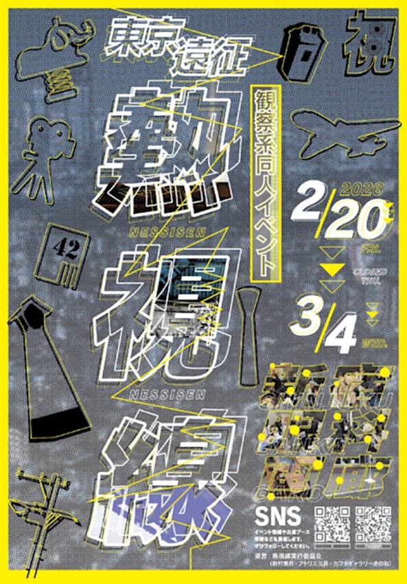 本展は、大阪発の観察イベント「熱視線」の東京出張版である。街の風景や看板、身近なモノや習慣など、日常に潜む対象を独自の視点で観察し、その面白さを表現へと昇華させる作家たちが集う。今和次郎の考現学や路上観察学会の系譜を背景に、都市と人間の関係を見つめ直す視線は、時代とともに形を変えながら継承されてきた。本展では、観察と表現を軸に世代やジャンルを越えた作品を展示販売し、都市の日常に潜むナニカを共有する場を創出する。