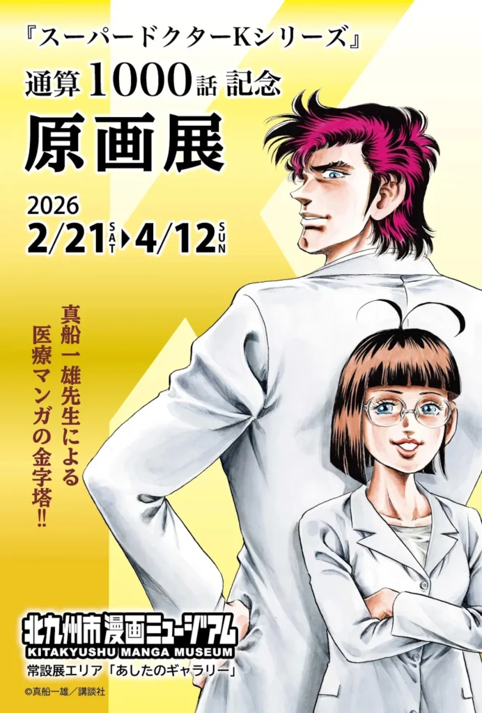 本展は、真船一雄による医療マンガ『スーパードクターK』シリーズが2026年2月に通算1000話へ到達することを記念して開催される原画展である。1988年に『スーパードクターK』として週刊少年マガジンで連載が開始され、その後『Doctor K』へと改題、さらに続編『K2』が現在も連載中という長期シリーズの歩みを振り返る。