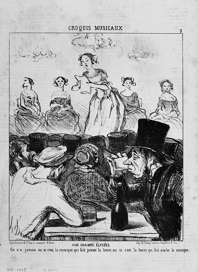 19世紀後半のパリ、マネや後に印象派と呼ばれることになる芸術家たちはカフェに集い、議論を戦わせました。カフェやキャバレー、ダンスホールは、飲食や娯楽を楽しむだけではなく、新たな芸術が生まれる場所となっていきます。それは、サロン(官展)からの脱却と共に、芸術が群衆に溶け込む新しい時代の始まりでもありました。