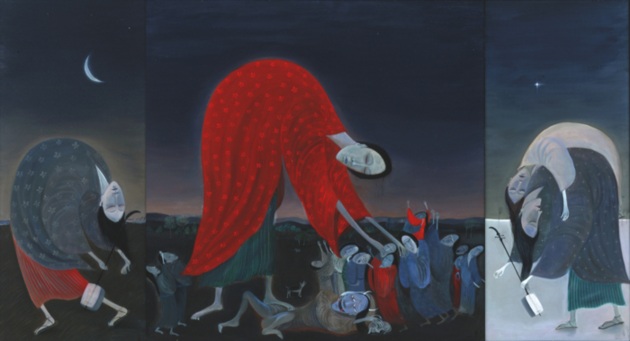本展では、戯曲や能、俳句を題材とした寺松国太郎の《サロメ》や《花之精図》、池田遙邨の山頭火シリーズ、絵画と随筆の両面で活動した斎藤真一の瞽女シリーズなど、多彩なコレクションを紹介。