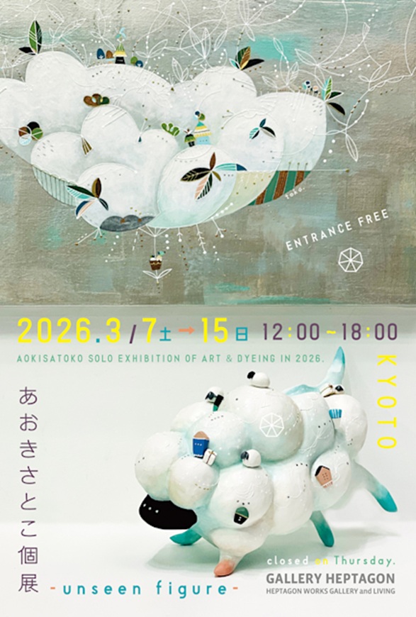 本展は染色技法による線表現を用いて「目には見えないもの」を描くアーティストあおきさとこの個展である。作家は感情や音、匂いなど視覚化されにくい感覚的な存在を、有機的に広がる線の構成によって表現してきた。本展ではこれまでの平面シリーズの新作に加え、日本画の画材である岩絵具を取り入れた立体作品の新シリーズを発表する。岩絵具特有のマットで深みのある質感と、作家の特徴である柔らかな線描が組み合わされることで、これまで以上に空間的で体感的な作品世界が展開される。目に見えない感覚や気配を可視化する試みを通して、鑑賞者の感覚や記憶に働きかける作品を紹介する展覧会である。