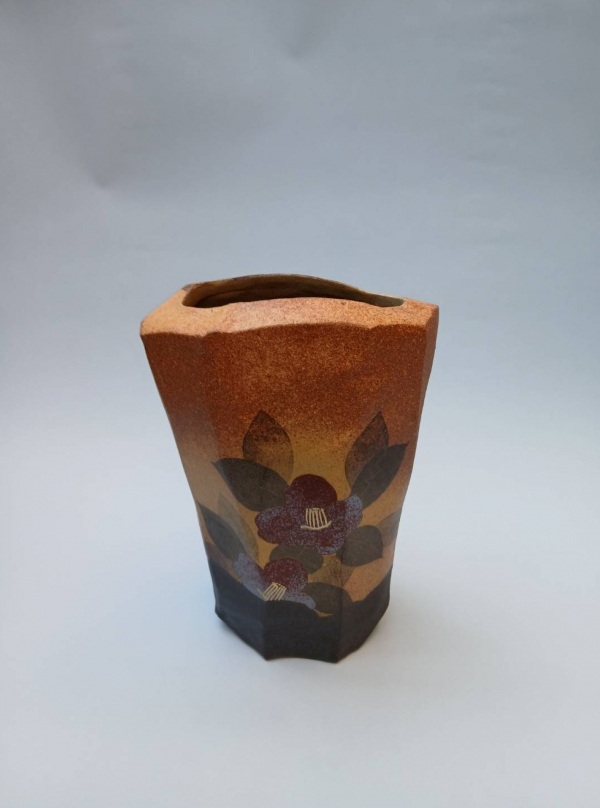 「椿文花器」17×高さ23cm