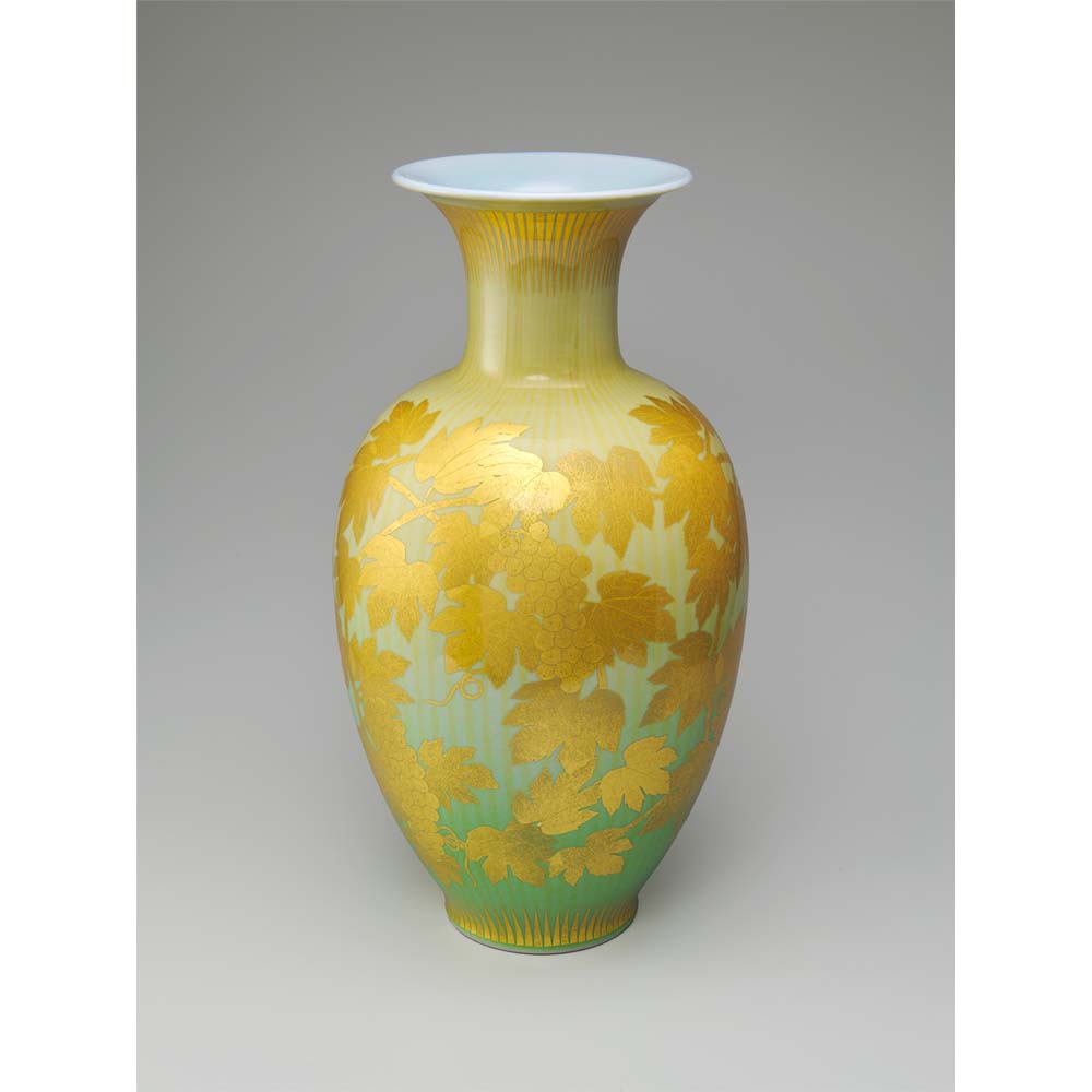 釉裏金彩葡萄文花瓶(径 26×高さ48.5cm)