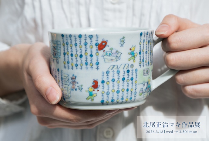 本展は九谷焼の作陶を行う北尾正治 マキ夫妻による展覧会である。鮮やかな色彩と緻密な絵付で知られる九谷焼の伝統技法を基盤にしながら、ユーモラスで温かみのあるモチーフや独自の世界観を表現した作品を紹介する。動物や人物などを題材にした親しみやすい造形と、九谷焼ならではの華やかな色彩表現が融合した作品は、工芸としての美しさと楽しさを兼ね備えている。本展では夫妻が手がけた多彩な器やオブジェを通して、現代九谷焼の魅力と創作の広がりを感じることができる展覧会である。