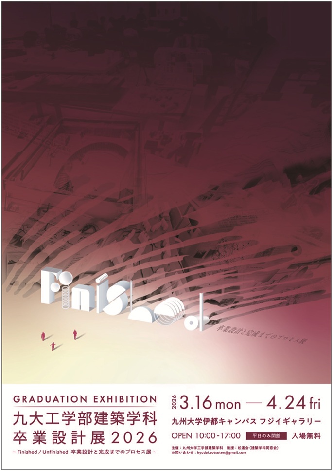 名称:「九州大学工学部建築学科 卒業設計展2026 Finished Unfinished 卒業設計と完成までのプロセス展」フジイギャラリー