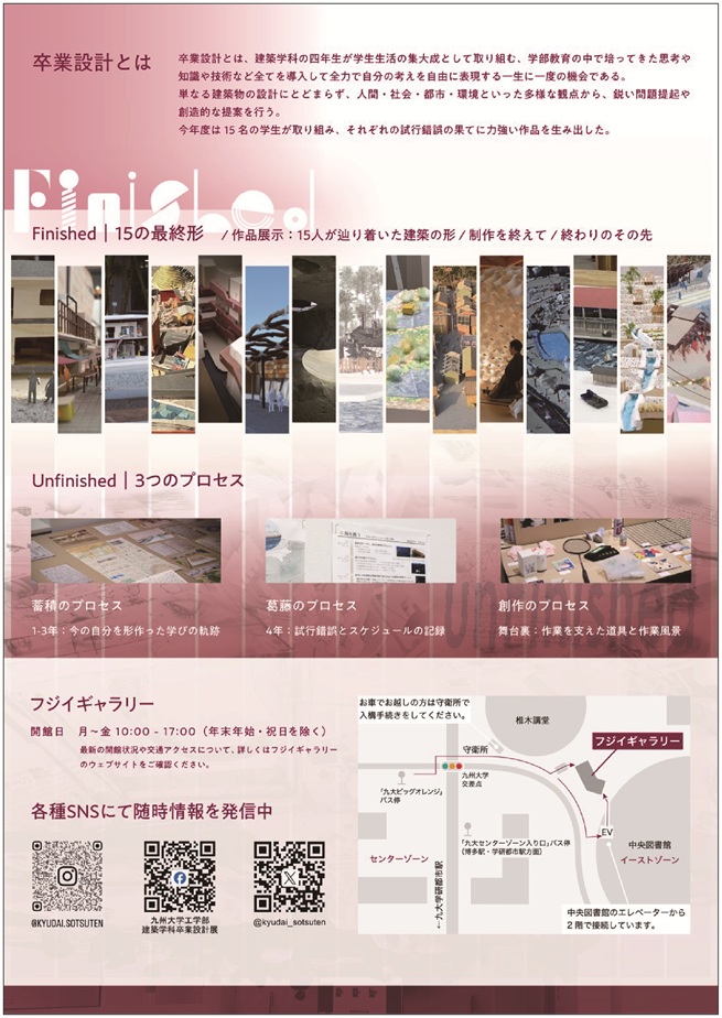 「九州大学工学部建築学科 卒業設計展2026 Finished Unfinished 卒業設計と完成までのプロセス展」フジイギャラリーv