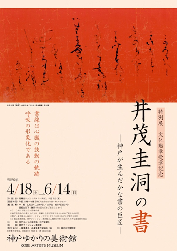 本展は、現代かな書を代表する書家 井茂圭洞 の2023年度文化勲章受章を記念して開催される回顧展である。井茂圭洞は1936年神戸市に生まれ、かな書の分野において独自の造形感覚を築き上げた書家である。