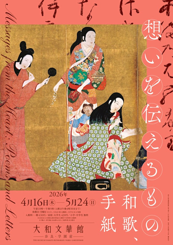 本展は和歌や手紙といった言葉の文化に注目し、人びとが想いを伝えるために用いてきた表現の姿を美術作品を通して紹介する展覧会である。古来日本では和歌や書簡が感情や関係を伝える重要な手段として用いられてきた。本展では恋文を受け取り読み書きする遊女を描いた松浦屏風をはじめとする作品を通して、和歌や手紙に託された想いの文化を探る。文学と美術が結びつく表現を手がかりに、日本の精神文化とコミュニケーションの歴史を読み解く展示となっている。