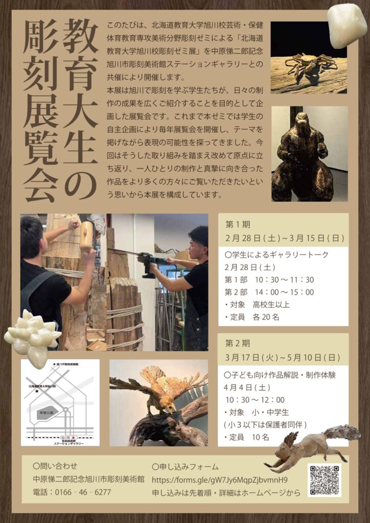 名称:「北海道教育大学旭川校彫刻ゼミ展」中原悌二郎記念旭川市彫刻美術館